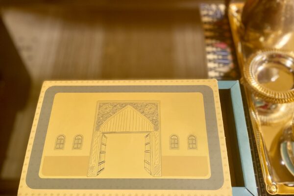 先日、サウジアラビアの友人マラムさんに、デーツのおもてなしセットをいただきました。落ち着いた黄色と緑に彩られた缶にぎっしり詰まったkhalas種の小ぶりなデーツと、別の容器に入ったデーツシロップ、そして縦割りピスタチオがセットになって、同じ黄色と緑の、アラビア窓のイラストが描かれた箱に収められていました。